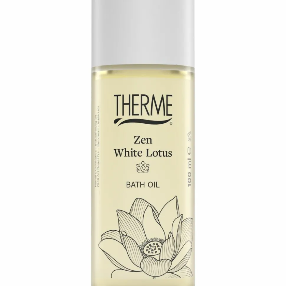 Therme Zen White Lotus Bath Oil is een voedende olie voor een ultiem moment van ontspanning. Geniet van de serene geur van witte lotus gecombineerd met aromatische jasmijn en subtiele witte musk.