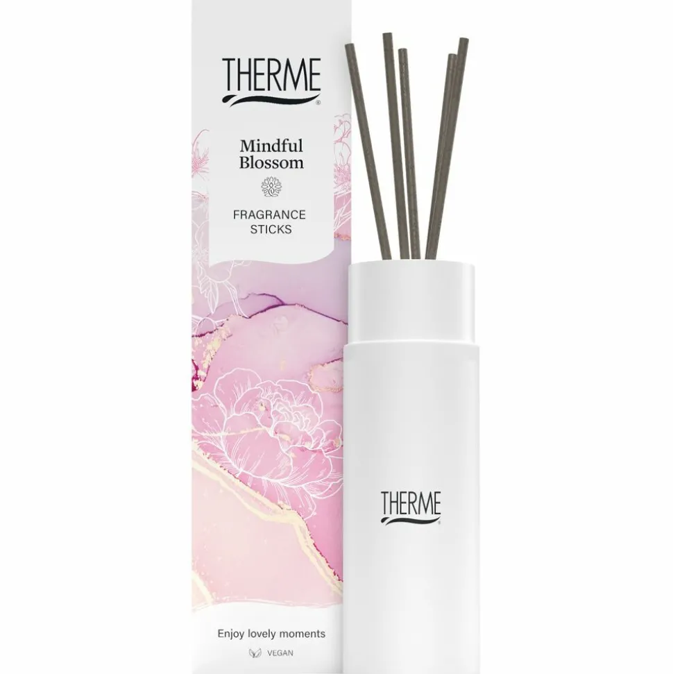 Therme Mindful Blossom Fragrance Sticks creëren een unieke sfeer en geurbeleving in huis. Geniet tot wel 12 weken van de verfijnde geur van bloesem en pioenroos gecombineerd met delicaat lentefruit en een vleugje cederhout.