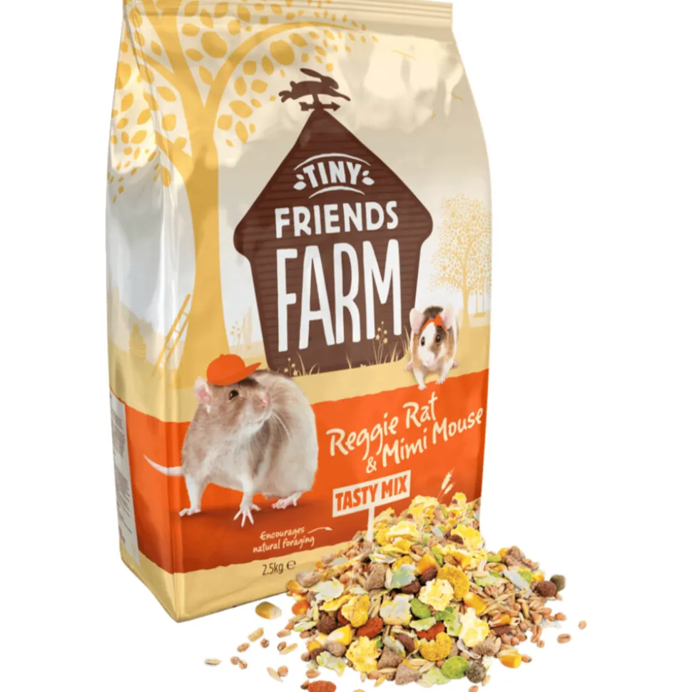 Tiny Friends Reggie Rat & Mimi Mouse Tasty Mix is een complete voeding die speciaal is aangepast op de behoefte van ratten en muizen.