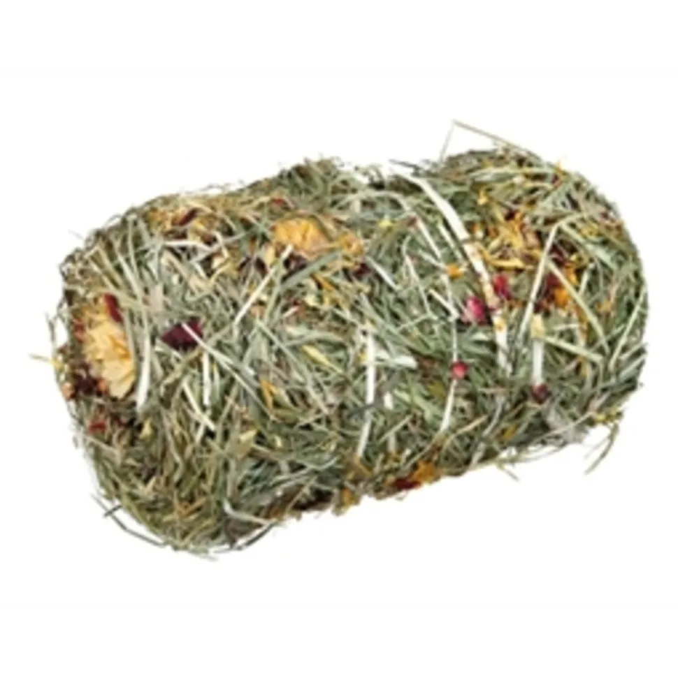 De Trixie Hooibaal Bloesemmix 18 cm is een heerlijke, natuurlijke snack voor konijnen en knaagdieren uit ruwvoer, met hooi en lekkere bloesems omwikkeld met henneptouw. Helemaal graanvrij! Deze leuke hooirol is een gezonde snack voor jouw knaagdier die de tandverzorging ondersteunt en verveling tegengaat. Dit kleine hooibaaltje bestaat uit heerlijk vers hooi met bloesems en omwikkeld met henneptouw. Jouw dier kan naar hartenlust knagen aan deze lekkere baal, wat verveling tegengaat, een correcte darmwerking ondersteunt en helpt bij de correcte afslijting van de tanden. Een zeer gezonde, natuurlijke snack die graanvrij is en geen toegevoegde suikers bevat!