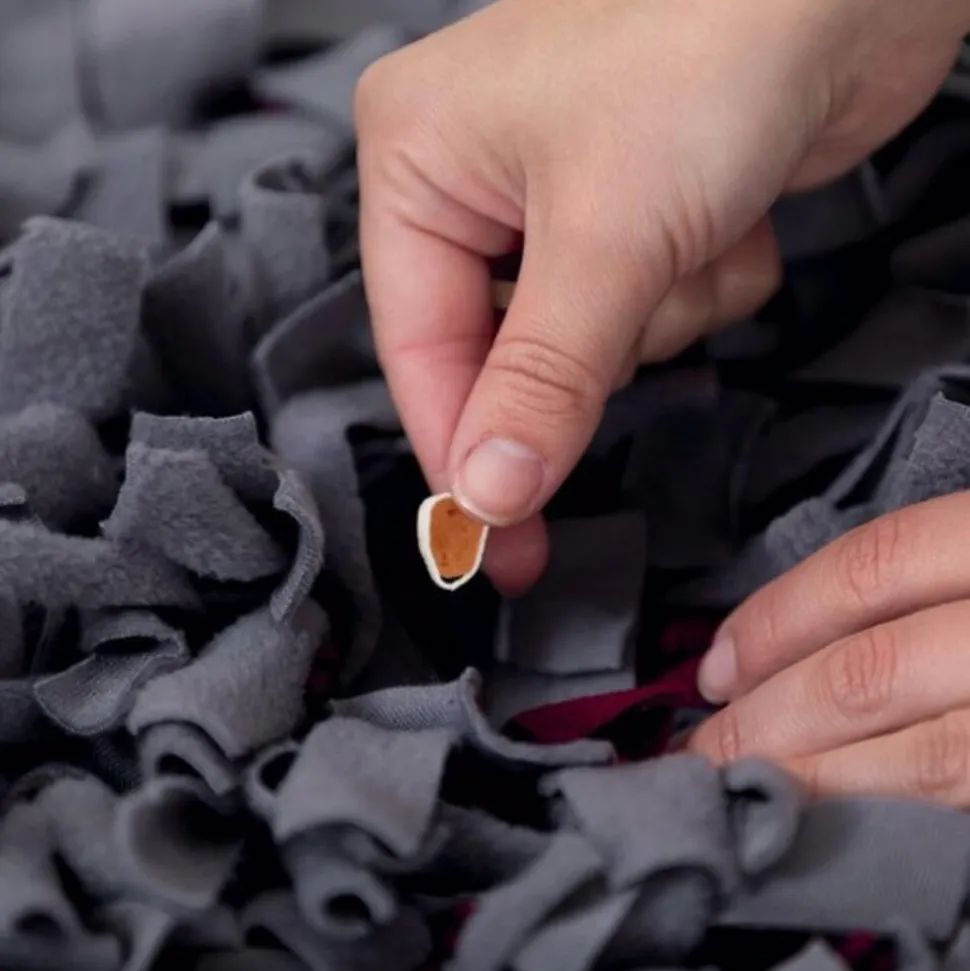 Deze leuke Activity Snuffelmat van Trixie ga je verveling tegen en wordt eten een feest! Deze mat bestaat uit allemaal losse stroken stof, waartussen je voer of beloningen voor jouw hond kunt stoppen. Jouw hond zal zijn neus moeten gebruiken om zijn beloning of brokken tussen alle laagjes van de mat te kunnen vinden. Zo is hij of zij lekker lang bezig met eten, is de kans op schrokken minder en spreek je het natuurlijke speurgedrag van jouw hond aan.