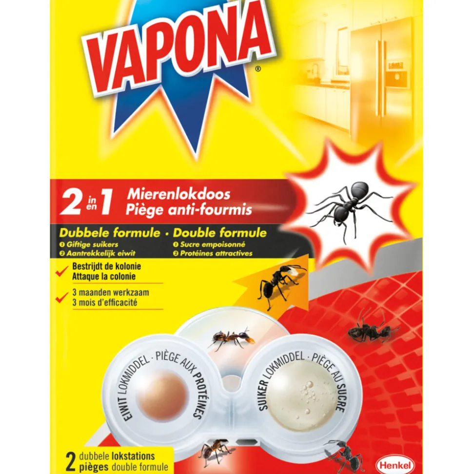 Mieren worden in verschillende levensstadia aangetrokken door verschillende voedselsoorten. Vapona Dubbele Mierenlokdoos bevat twee verschillende lokstoffen om zo het maximaal aantal mieren aan te trekken. De mieren nemen het insecticide mee naar het nest waardoor de hele kolonie getroffen wordt.