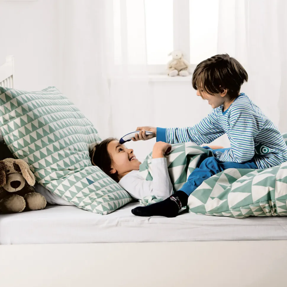 - Incl. 10 beschermkapjes voor meting in het oor, opbergbox, 2 AAA-batterijen van 1,5 V, handleiding met garantiecertificaat