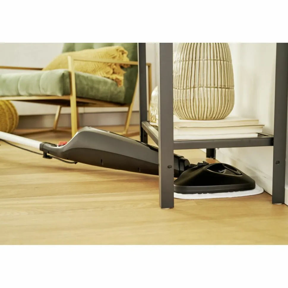 De stoombezem Steam kan worden gebruikt op alle soorten vloeren en warmt op in slechts 15 seconden. Dankzij de nieuwe temperatuurdetectie kunt u nu gemakkelijk van stopcontact veranderen om een andere kamer schoon te maken zonder dat u moet wachten totdat hij opnieuw is opgewarmd, want hij is onmiddellijk terug gebruiksklaar. Met het waterreservoir van 400 ml kan de Steam gedurende 28 minuten gebruikt worden. Ook is het waterpeil nu zichtbaar, zodat u gemakkelijk kunt controleren of er nog voldoende water in het reservoir zit of dat het moet worden bijgevuld.*Getest op de E. Coli-bacterie en het gemodificeerde vacciniavirus Ankara (MVA) met een nastoomprocedure van 1 minuut (zie handleiding).