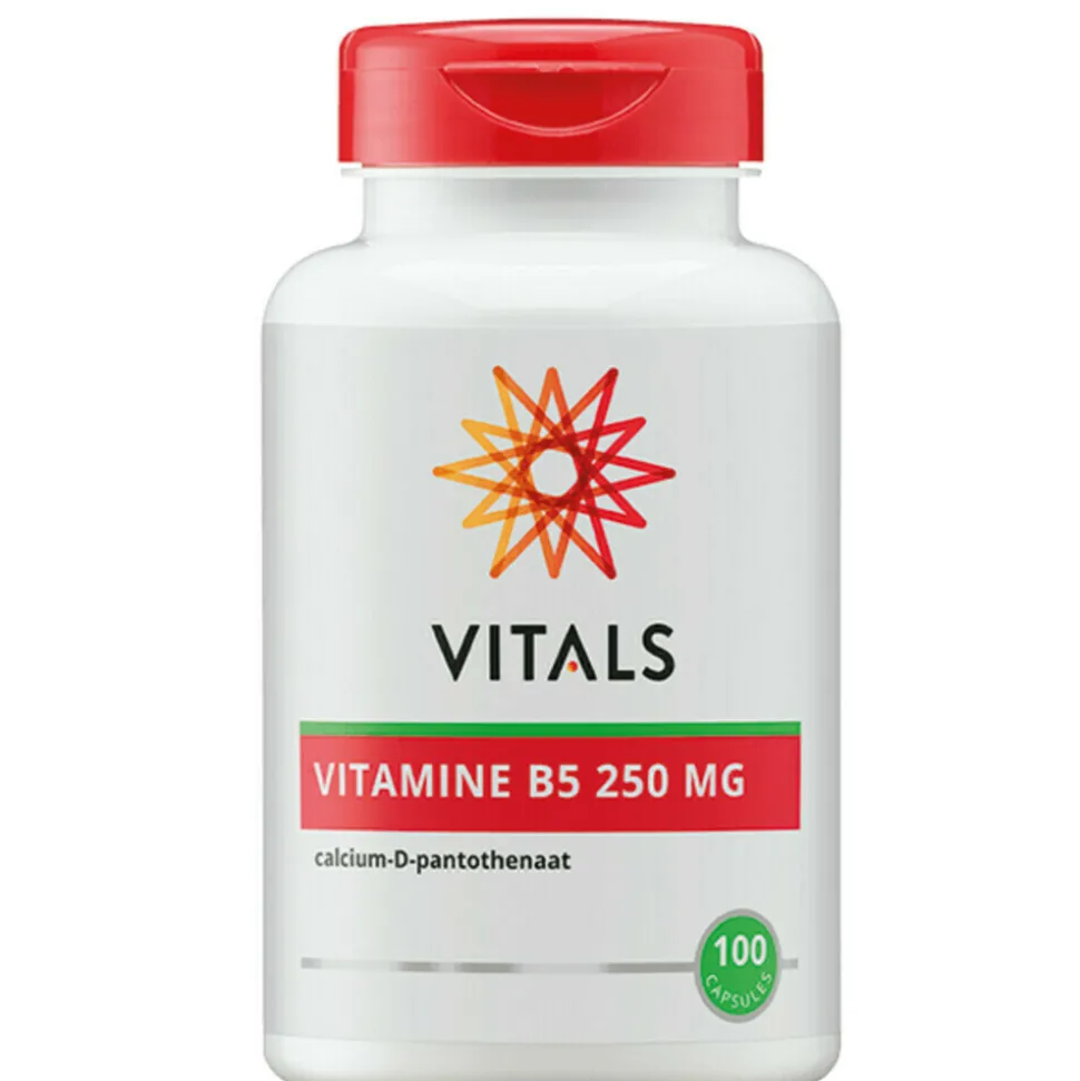 Vitamine B5 250 mg van Vitals biedt een hoge dosering in zuivere vorm. De grondstof zit in een plantaardige capsule uit cassave en is aangevuld met een hulpstof uit rijst.