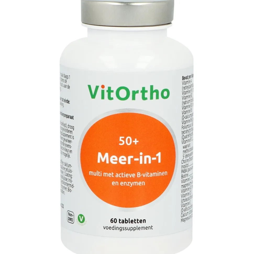 Vitortho Meer in 1 50+ multivitamine/mineralenpreparaat afgestemd op de behoefte van 50+-ers, met de beste vitamine- en mineraalverbindingen.
