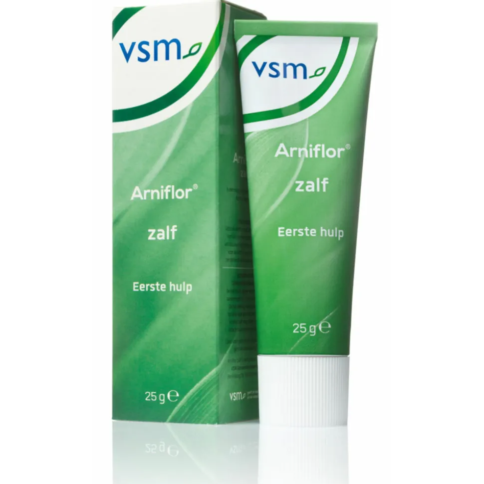 VSM Arniflor Zalf is een natuurlijk eerste hulpmiddel voor blauwe plekken. De zalf bevat de natuurlijke ingrediënten Arnica montana (valkruid) en Calendula officinalis (goudsbloem). Calendula officinalis ondersteunt het herstellend vermogen van de huid. Arnica zalf heeft een vette basis en is daardoor met name geschikt voor een droge huid. Arniflor zalf kan gebruikt worden in het gezicht en rond de ogen.