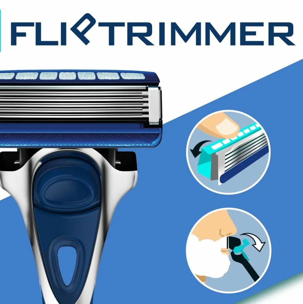 - Scheer precies met de flip trimmer, ook op de moeilijk bereikbare plekjes. Simpelweg het gelreservoir met de duim terug klikken.