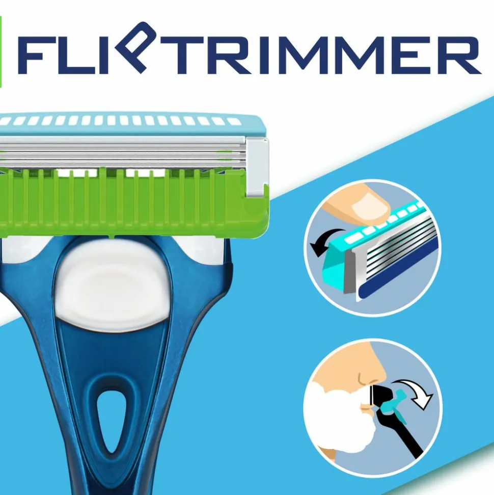- Scheer precies met de flip trimmer, ook op de moeilijk bereikbare plekjes. Simpelweg het gelreservoir met de duim terug klikken.