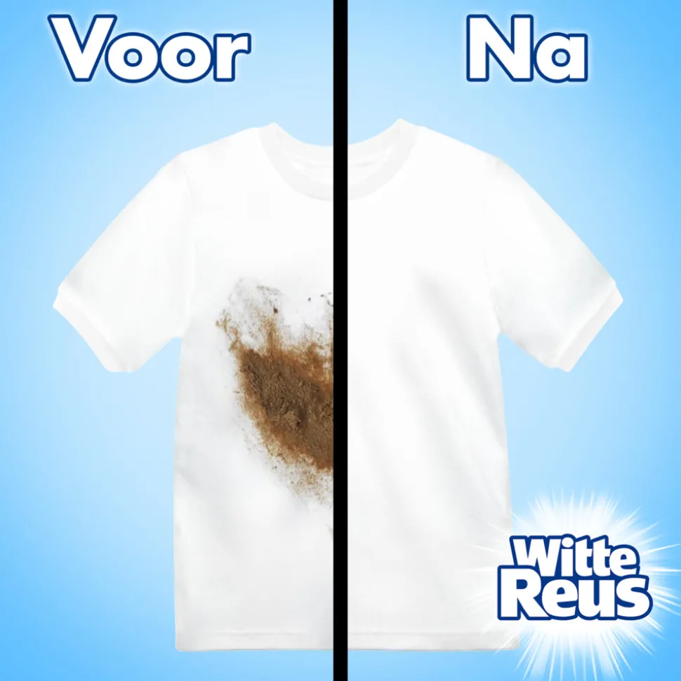 - Witte Reus vloeibaar wasmiddel gel is dankzij zijn reuzenwaskracht extra sterk tegen vlekken, en zorgt voor extra veel hygiënisch schoon wasgoed