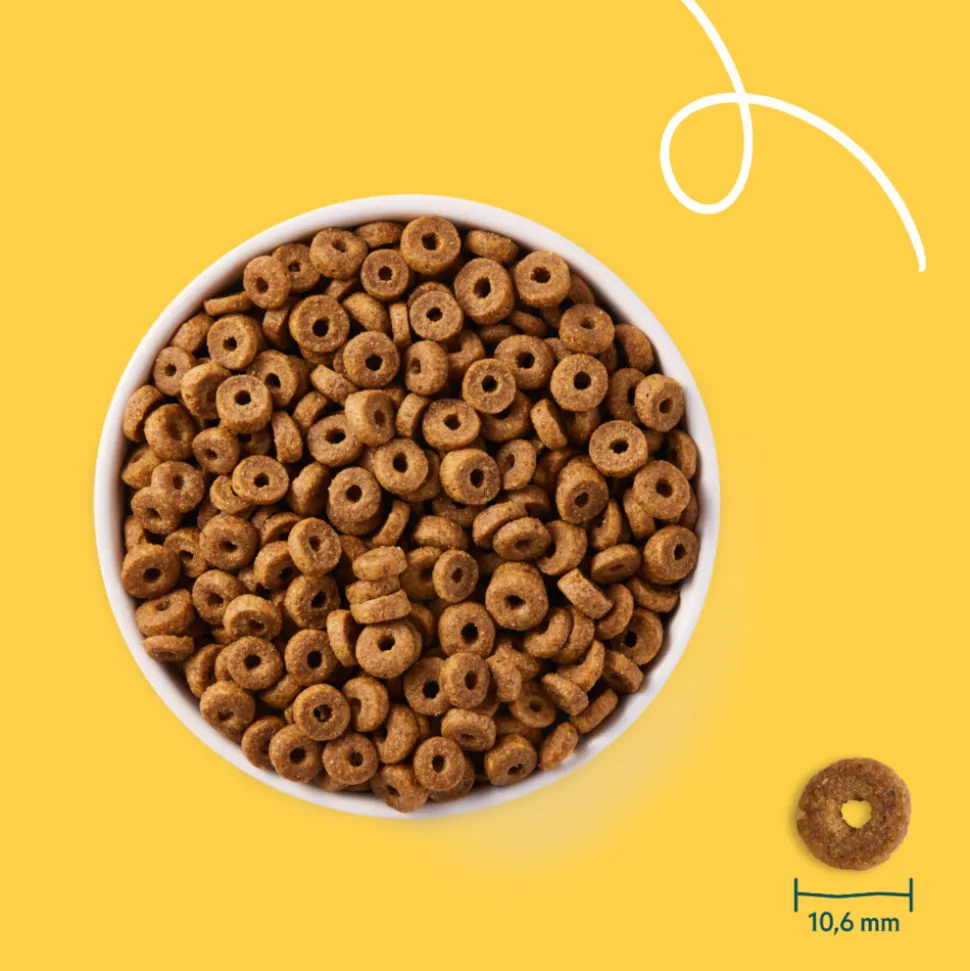 Gedroogde kip* (20,5%), tarwe*, mais*, rijsteiwit*, sojabonen*, kippenvet*, gele erwten*, groene erwten*, zonnebloempitschilfers*, biergist, sojaschilfers*, mineralen, MSC visolie¹.