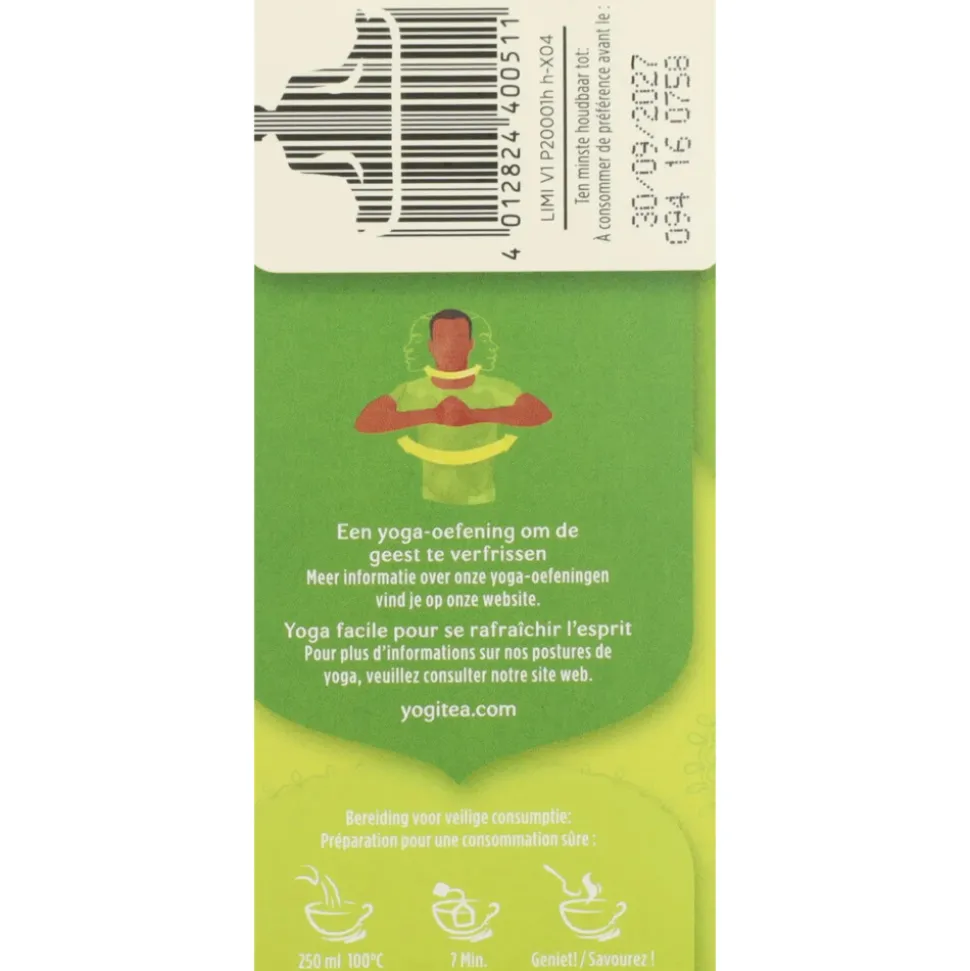 Deze Yogi Tea Lime mint bevat een friszurige lime, aromatische pepermunt, kardemom en zoethout. Het aroma van deze heldere, frisse thee verfrist de geest als een koel briesje. Deze |Yogi Tea Lime Mint is koud of warm een uitnodiging om te genieten van een ontspannen dag vol harmonie en welbevinden. Let op: Bevat zoethout,mensen met hoge bloeddruk dienen overmatig gebruik te vermijden.