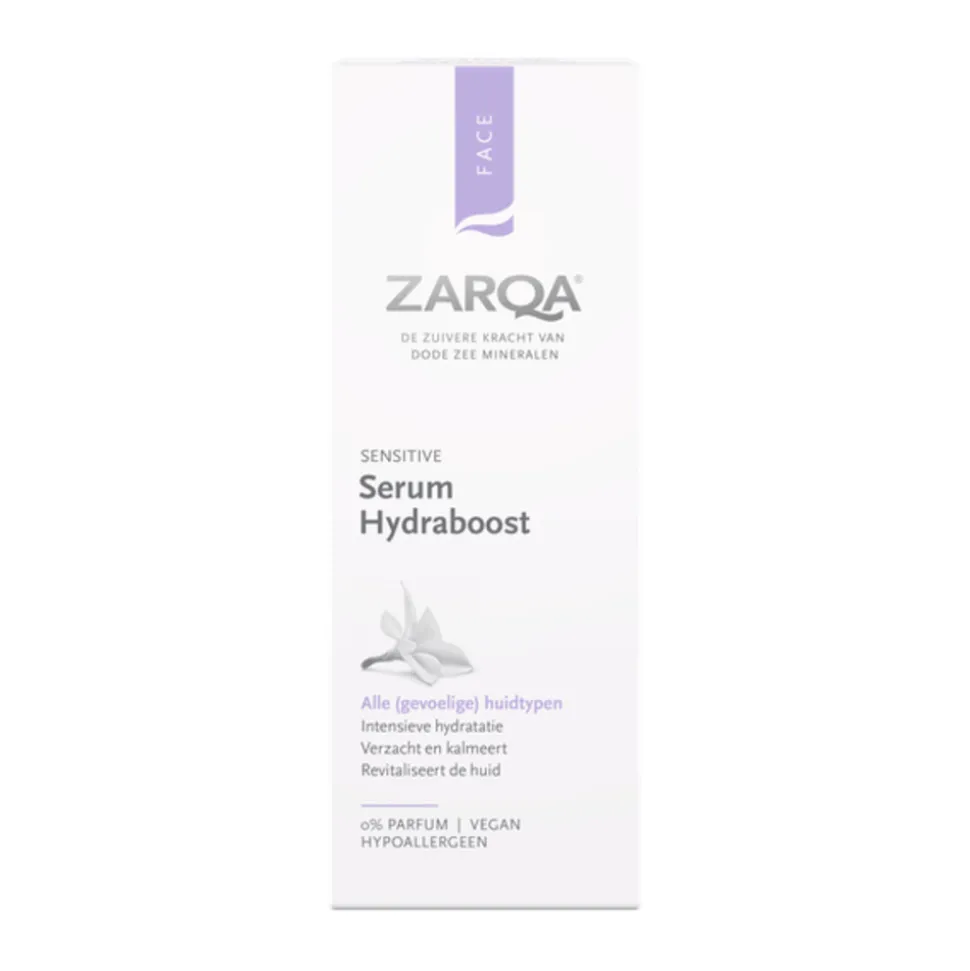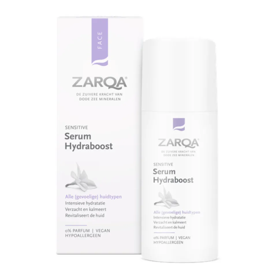 Zarqa Serum Hydraboost verbetert de hydratatie van de huid en geeft de (vermoeide) huid een directe oppepper. Het milde serum kalmeert en verzacht de (gestreste) huid direct. Ook stimuleert Zarqa Serum Hydraboost de aanmaak van collageen. De toevoeging van extra magnesium versterkt de revitaliserende werking. Het serum heeft een hoge concentratie, wordt snel door de huid opgenomen en trekt dieper in de huidlagen. Hierdoor kan een dag- of nachtcrème nog beter zijn werk doen. Geschikt voor alle huidtypen, zelfs de meest gevoelige.